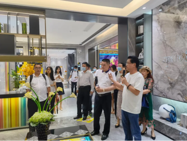 首先,楊青濤董事長團隊一行人在蒙娜麗莎集團張旗康董事的陪同下,相繼參觀了蒙娜麗莎工廠的智能制造數字中心、生產車間、廢氣廢水處理中心、企業文化長廊及展廳等區域,通過了解蒙娜麗莎數字化管理、標準化生產、技術研發、環保治理設施等方面的展現,深刻地感受到蒙娜麗莎真正將藝術、綠色與智能等元素高度融合到生產中,在科研、生產自動化與綠色化方面,是業內當之無愧的領軍人。